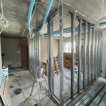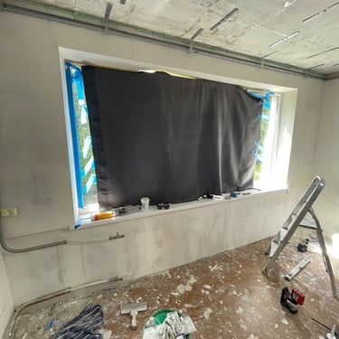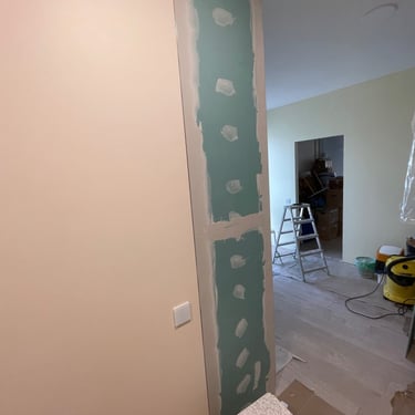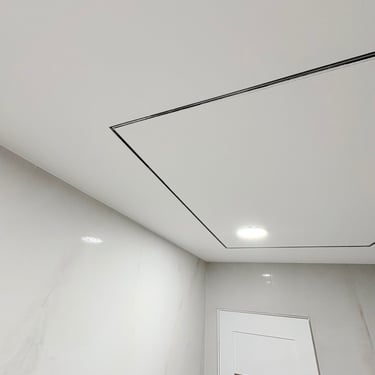 Virtuvės zonoje suformuota papildoma siena su šešėline siūle, kuri padėtų išvengti paviršiaus įtrūkimų. Buvo svarbu, kad gipso montavimas, glaistymas bei dažymas būtų atlikti kruopščiai ir kokybiškai. Taip pat klientas pageidavo įrengtų kištukinių lizdų, ergonomiškai išdėstytų jungiklių bei sumontuotų šviestuvų ir LED juostų.