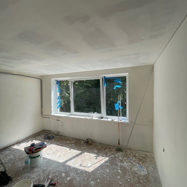 Atlikti visi apdailos darbai nuo elektros instaliacijos iki galutinio dažymo bei grindų klojimo. Suformuotos pertvaros, sumontuotas gipso kartonas, įrengtos šešėlinės siūlės, nišos, priglaistomi šviestuvai ir sudėtos laminuotos grindys.