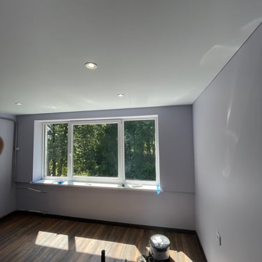 Kliento pageidavimai – visiškai atnaujintas kambarys, nauja elektros instaliacija, sumontuotos gipso kartono lubos, išlygintos ir nudažytos sienos, paklotas laminatas su grindjuostėmis, prijungti elektros įrenginiai bei sumontuoti šviestuvai.