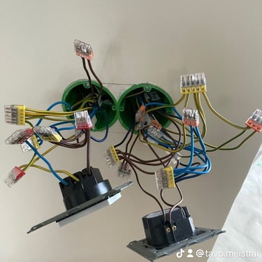 Kliento pageidavimai – užbaigti kito meistro nebaigtus elektros darbus, prijungti termostatus, sumontuoti kištukinius lizdus ir jungtukus, pilnai pajungti visus šviestuvus bei LED juostas.