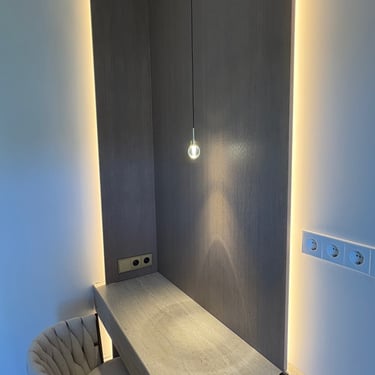 Kliento lūkesčiai – aukšta darbų kokybė ir aiškūs terminai. Surinktas elektros skydelis, prijungti termostatai, sumontuoti visi šviestuvai, LED juostos ir pasitinkantis apšvietimas.